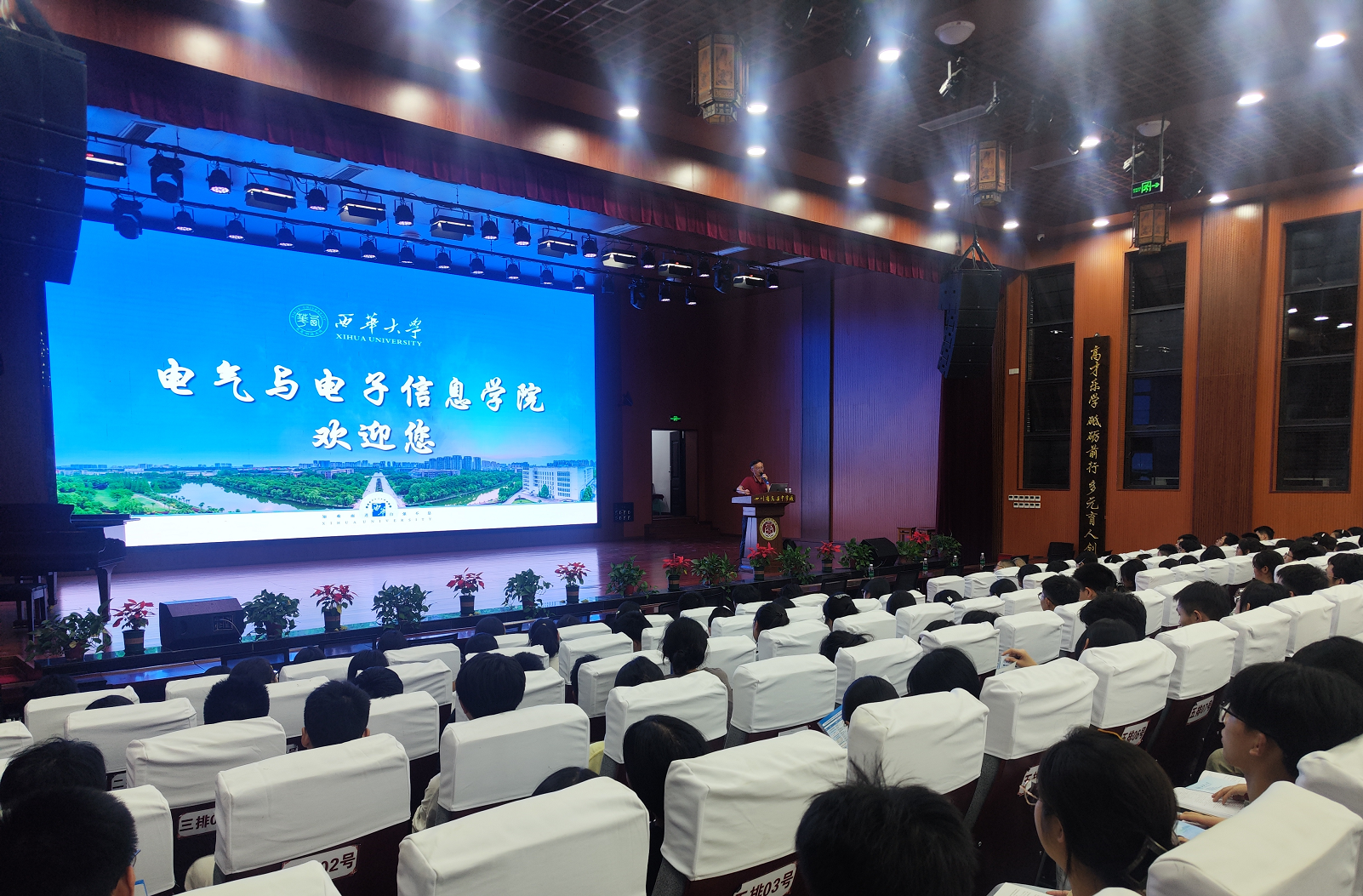 随后,胡宏平以“电气与电子信息学院欢迎您”为题,聚焦学院办学特色展开宣讲。他结合学科前沿动态与行业需求,详细介绍了电气工程及其自动化、电子信息工程等优势专业的课程体系、实践平台及就业方向,并通过学院师生在智能电网、新能源技术等领域的创新成果,展现了学院“产学研用”深度融合的育人模式。