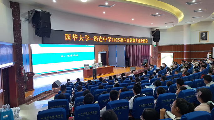 926日,学院党委副书记郭忠林、副教授胡宏平率招生宣讲团走进宜宾筠连中学,开展2025年招生宣传暨专业介绍会。筠连中学高三300余名学生参与活动。此次宣讲不仅为高三学子提供了科学填报志愿的指导,更激发了他们对未来发展的信心与期待。宣讲会在西华大学宣传片的精彩画面中拉开序幕。郭忠林从学校历史沿革、师资力量、学科建设、科研成果及就业前景等方面展开系统介绍。他强调,西华大学作为四川省属重点综合性大学,始终以“求是、明德、卓越”为校训,培养了大批扎根四川、服务国家的创新型人才。近年来,学校在智能制造、新能源、电子信息等领域取得突破性成果,毕业生就业率和就业质量连续多年位居全省前列,成为众多学子向往的高等学府。