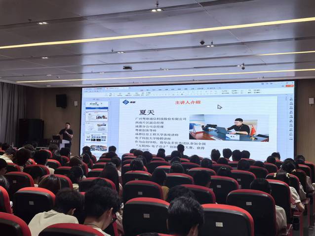 为帮助2025级电子信息类新生洞察信息通信技术(ICT)前沿趋势,科学规划大学四年的学习与职业发展路径,电气学院“大学生引路人——青蓝职业发展与就业咨询工作室”于10月16日晚在5ST-401举办“ICT技术发展趋势与职业生涯规划”专题讲座。广州粤嵌通信科技股份有限公司西南片区副总经理夏天受邀主讲,结合企业实践与行业数据,为200余名新生带来一场兼具技术广度与职业指导深度的主题分享。活动由工作室导师郭奕教授主持。
