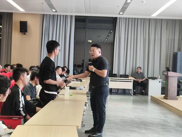 在互动环节中,2025级新生就“如何平衡课业与技术实践”踊跃提问。夏总建议:优先夯实核心课程,并通过如“嵌入式开发入门营”等循序渐进的实践项目,形成“学中做、做中学”的闭环。