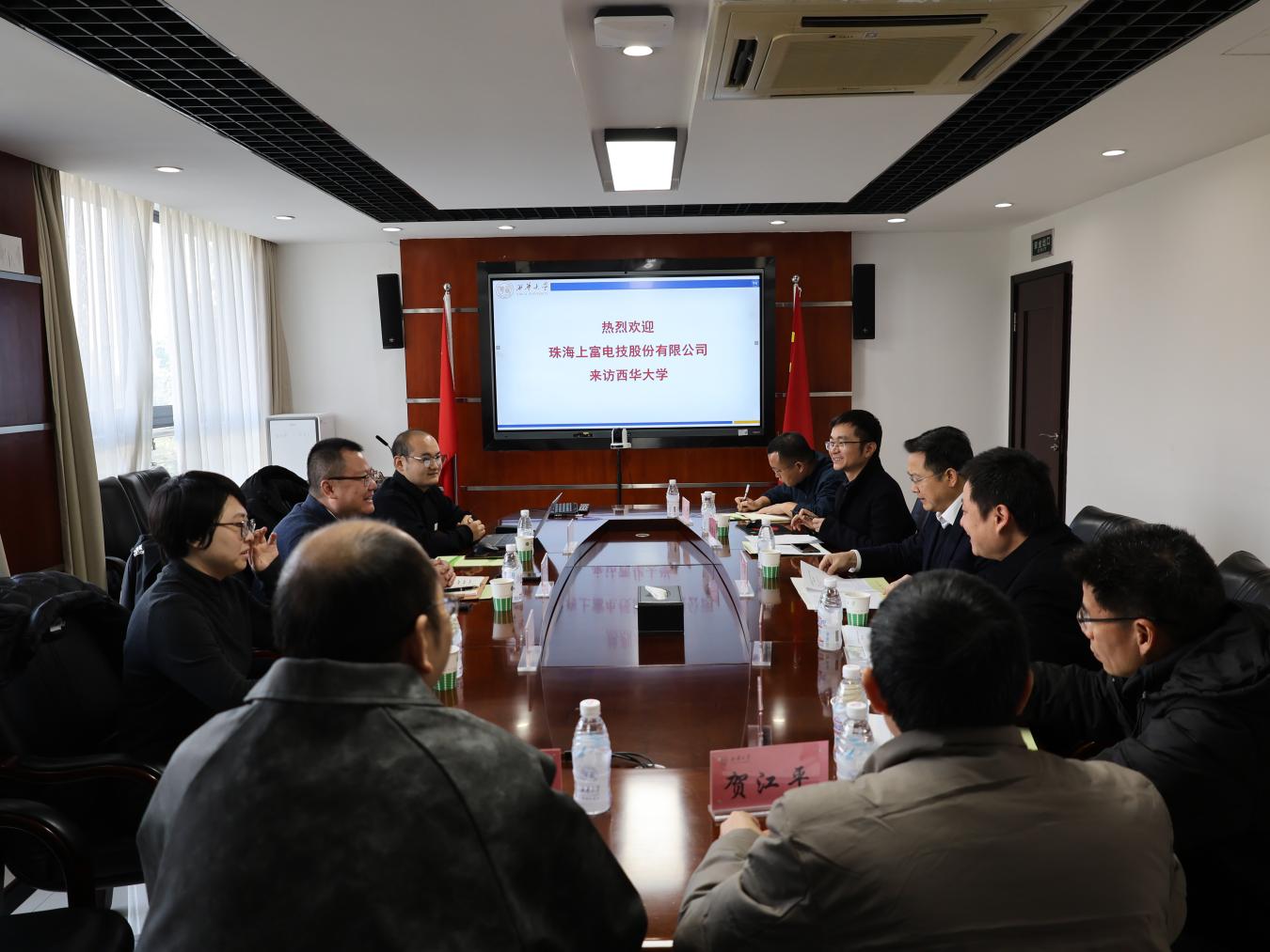 2025年11月20日上午,珠海上富电技股份有限公司与西华大学电气与电子信息学院在西华大学办公楼413会议室举行了合作交流座谈会。本次会议旨在深化校企合作,推动技术研发与人才培养双向赋能,为区域电子信息产业高质量发展注入新动能。上富公司总经理刘洋一行出席会议,西华大学副校长郎方年应邀到会并讲话,电气与电子信息学院党委书记郑宇、副院长阎铁生和骨干教师代表参加会议,会议由郑宇主持。