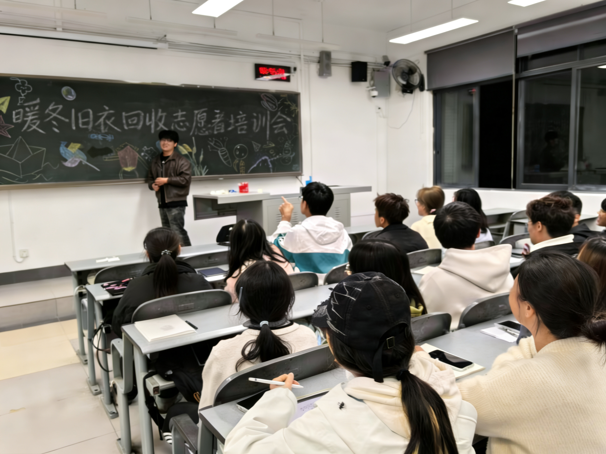 2025年11月30日,为提升志愿者服务水平、确保"暖冬旧衣回收"公益活动顺利开展,西华大学电气与电子信息学院志愿者实践部在6B-214教室举办了专题培训会。