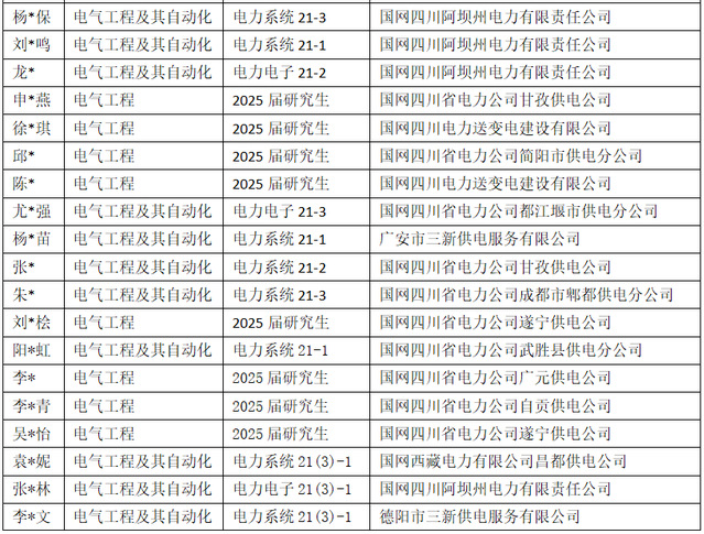 现将入职国网签约毕业生信息公布如下,祝贺各位同学开启人生新篇章,在工作岗位中奋发进取,再创辉煌,为国家能源建设发展作出新的更大贡献!