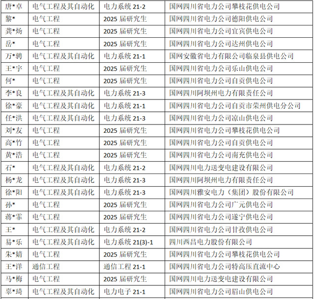 现将入职国网签约毕业生信息公布如下,祝贺各位同学开启人生新篇章,在工作岗位中奋发进取,再创辉煌,为国家能源建设发展作出新的更大贡献!