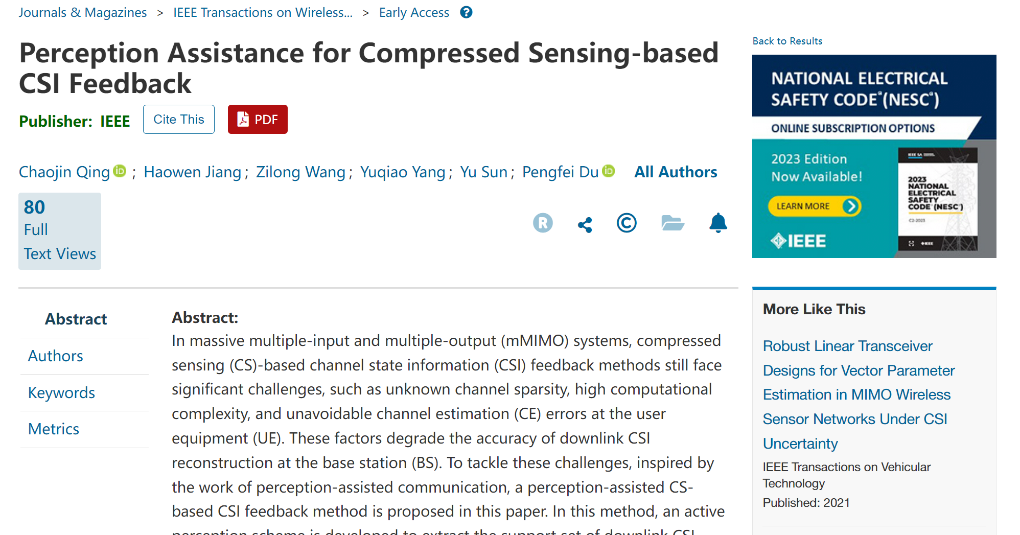 电气与电子信息学院卿朝进教授的WNCG团队的成果丰硕,近期在一区TOP期刊发表研究性论文2篇,近一年来累计发表或录用SCI期刊论文十余篇。这些论文的第一作者和通讯作者均为卿朝进教授,其他作者包括我校的杜鹏飞与叶勉老师,以及硕士研究生姜皓文、刘芝樱、王子龙、胡文权、杨雨樵和孙宇等。