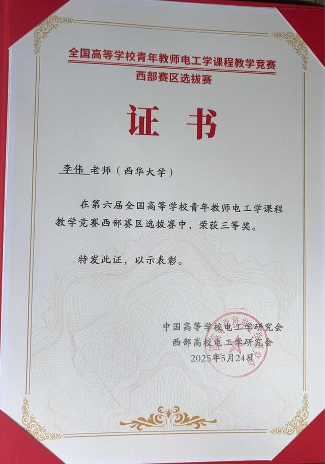 西华大学教师在2025年第六届全国高等学校青年教师电工学课程教学竞赛中荣获西部赛区三等奖