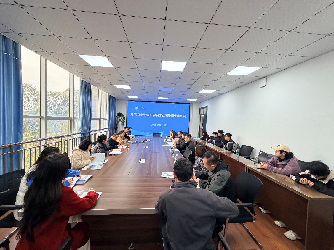 加强家校沟通,共同帮扶学业困难学生顺利完成学业,3月19日上午10点,电气与电子信息学院在6A301会议室召开了学业困难人员家长会。学院党委副书记赵必鸣、副院长王涛、学工办主任刘钊、相关辅导员以及试读学生和家长参加了此次会议。